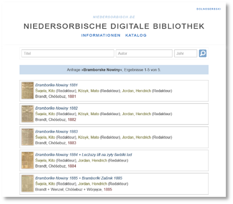 - ZielgruppeSorbisch Sprechende und/oder Lernende, Sorbischlehrer:innen, Journalist:innen, Ortschronist:innen